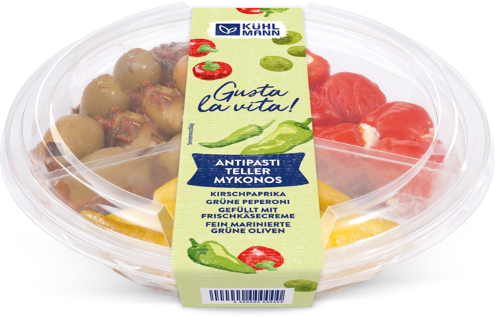 Zutaten: Kirschpaprika 55 %, Frischkäse 39 %, Rapsöl, Stärke, Branntweinessig, Gewürze, Zucker, Speisesalz, Antioxidationsmittel: Ascorbinsäure, Citronensäure; Festigungsmittel: Calciumchlorid