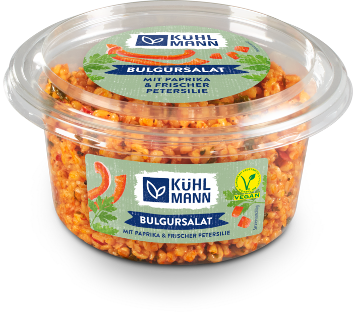 Bulgur gegart 66 % (Trinkwasser, Weizen), Zwiebeln 7 %, Paprika 6 %, Rapsöl, Paprikamark, Zucker, Petersilie 3 %, Apfelessig, Tomatenmark, Speisesalz, Schwarzkümmel, Gewürze, Chili, Knoblauch, Branntweinessig, Konservierungsstoff: Kaliumsorbat.
