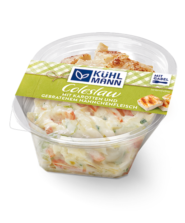 Weißkohl 36 %, Rapsöl, Karotten 13 %, Trinkwasser, Hähnchenbrustfleisch gebraten, mariniert, flüssig gewürzt 7 % (Hähnchenbrust 6 %*, Trinkwasser, Stärke, Speisesalz, Dextrose), Paprika, Zucker, Porree, kräuteressig (Branntweinessig, Kräuter- und Gewurzauszuge), Branntweinessig, Eigelb**, Speisesalz, Stärke, Gewürze, Kräuter, Antioxidationsmittel: Ascorbinsäure, Verdickungsmittel: Guarkernmehl, Xanthan; Säureregulator: Natriumacetate.