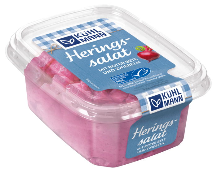 Hering* 40 %, Trinkwasser, Rapsöl, Gurken, Rote Bete 8 %, Zucker, Joghurterzeugnis (fettarme Milch, Stärke, Starterkulturen), Zwiebeln 2 %, Sellerie, Branntweinessig, Stärke, Eigelb**, färbendes Rote-Bete-Saftkonzentrat, Speisesalz, Gewürze, Verdickungsmittel: Guarkernmehl, Säureregulator: Natriumacetate, Säuerungsmittel: Essigsäure, Konservierungsstoff: Kaliumsorbat