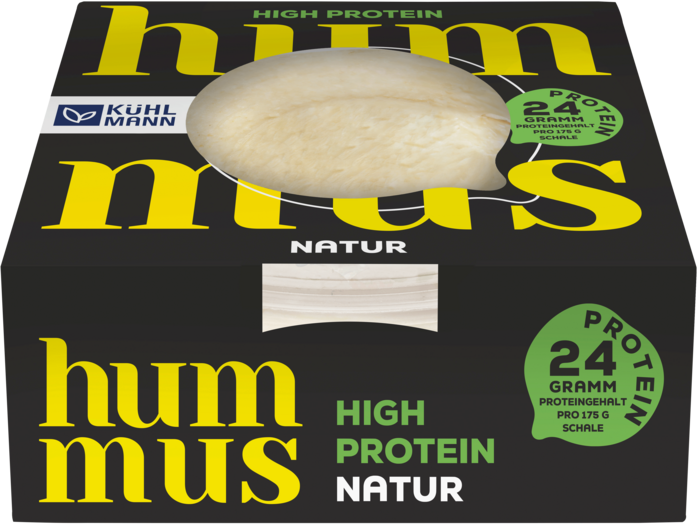 Kichererbsengegart 48 % (Trinkwasser, Kichererbsen), Trinkwasser, Milcheiweißerzeugnis, Sesam 9 %, Rapsöl, Branntweinessig, Zucker, Speisesalz, Knoblauch, Zitronensaftkonzentrat, Gewürze, Säureregulator: Natriumacetate.