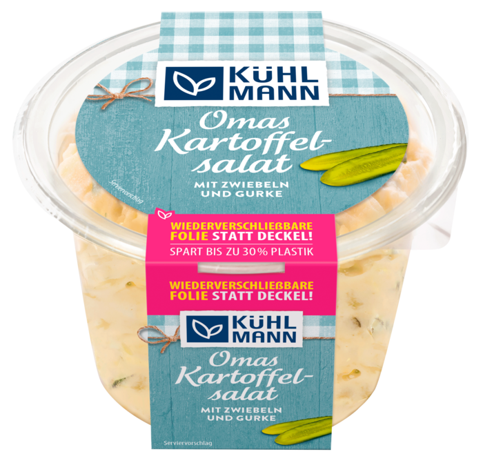 Kartoffeln 68 %, Rapsöl, Zwiebeln 5 %, Gurken 5 %, Zucker, Branntweinessig, Speisesalz, Sahne, Senfsaaten, Kräuter, Eigelb*, modifizierte Stärke, Stärke, Gewürze, färbendes Karottenkonzentrat, Verdickungsmittel: Guarkernmehl, Xanthan; Säureregulator: Natriumacetate, Konservierungsstoff: Kaliumsorbat.