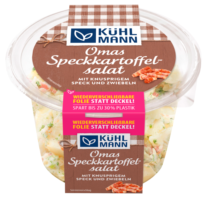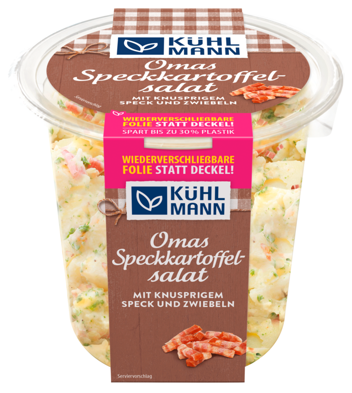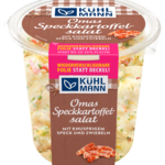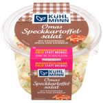 Kartoffeln 75 %, Eigelb* , Rapsöl, Zucker, Zwiebeln 4 %, Branntweinessig, Speisesalz, Bacon 1 % (Schweinefleisch, jodiertes Nitritpökelsalz (Speisesalz, Kaliumjodat, Konservierungsstoff: Natriumnitrit), Antioxidationsmittel: Extrakt aus Rosmarin, Buchenholzrauch), färbendes Karottenkonzentrat, Maltodextrin, Rauch, Säureregulator: Natriumacetate, Verdickungsmittel: Guarkernmehl, Konservierungsstoff: Kaliumsorbat