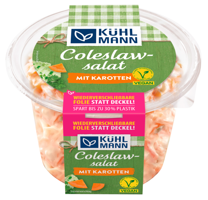 Weißkohl 56 %, Rapsöl, Trinkwasser, Karotten 8 %, Zucker, Branntweinessig, kräuteressig aus Branntwein, modifizierte Stärke, Speisesalz, Zwiebeln, Kräuter, Stärke, Gewürze, Antioxidationsmittel: Ascorbinsäure, Säuerungsmittel: Citronensäure, Verdickungsmittel: Guarkernmehl, Xanthan; Säureregulator: Natriumacetate.