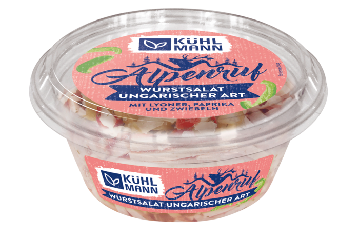 Lyoner 65 % (Schweinefleisch, Speck, Trinkwasser, Speisesalz, Dextrose, Säureregulator: Natriumcitrate, Maltodextrin, Gewürze, Antioxidationsmittel: Ascorbinsäure, Farbstoff: Echtes Karmin), Paprika 13 %, Trinkwasser, Zwiebeln 4 %, Branntweinessig, Rapsöl, Zucker, Speisesalz, Kräuter, Verdickungsmittel: Guarkernmehl, Säureregulator: Natriumacetate.