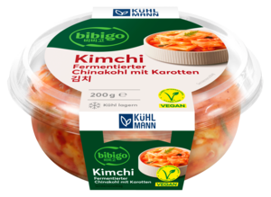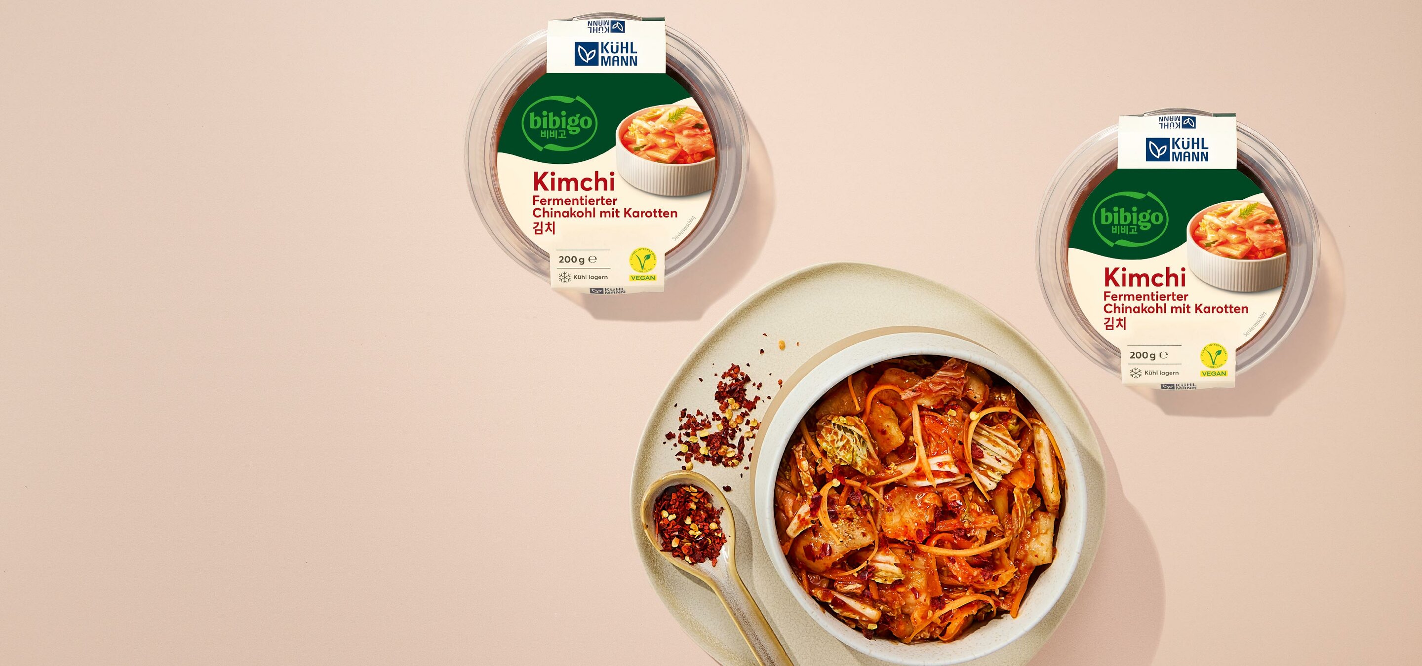 Fermentiert, würzig, unwiderstehlich: Unser Kimchi besteht aus Chinakohl und Karotten und besticht geschmacklich durch seine einzigartige Kombination aus Würze, milder Süße und knackiger Frische. Kimchi ist eine ideale Beilage zu Reis und Bowls oder ein aromatisches Topping für Sandwiches und Salate. Auch in die deutsche Küche lässt sich Kimchi bestens integrieren, zum Beispiel als Füllung für Rinderrouladen oder als Belag auf einem knusprigen Flammkuchen.